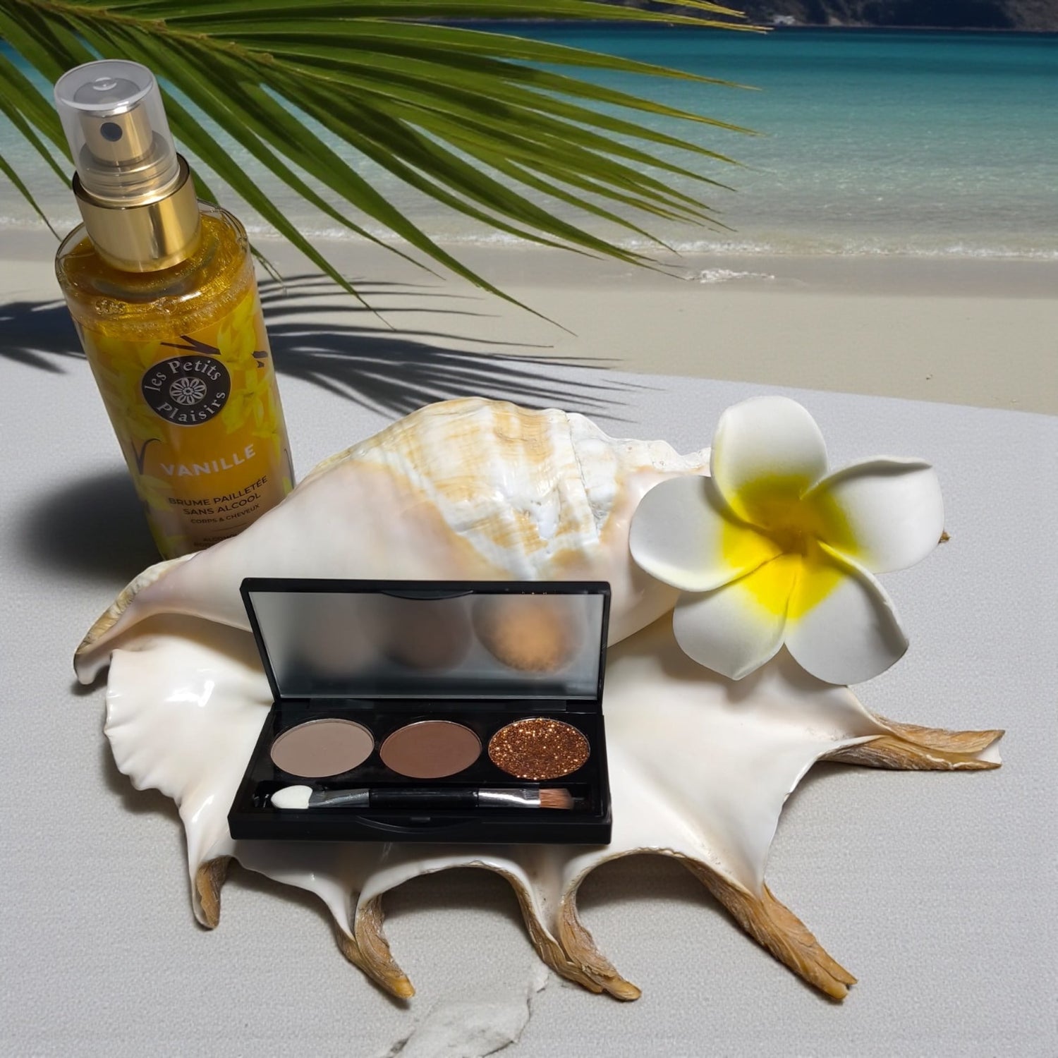 Découvre un duo envoûtant : la brume parfumée tropicale et la nouvelle palette crépuscule de tiaré. Un rituel de beauté solaire et mystérieux, inspiré par les couchers de soleil de tahiti.
