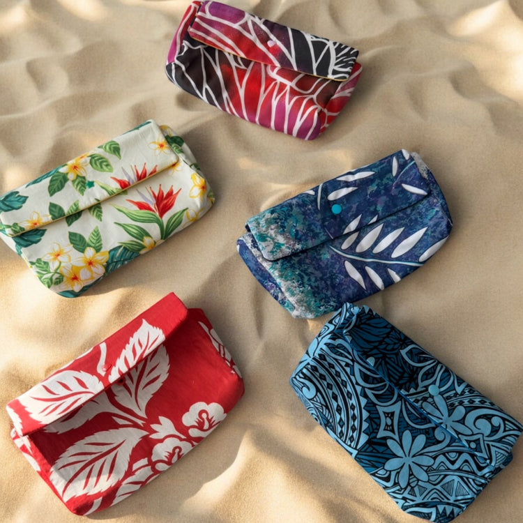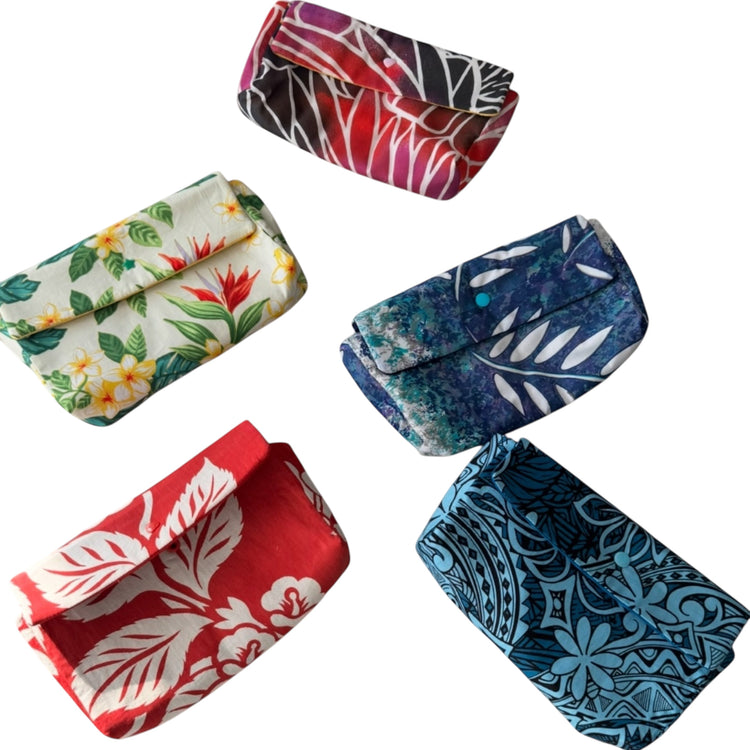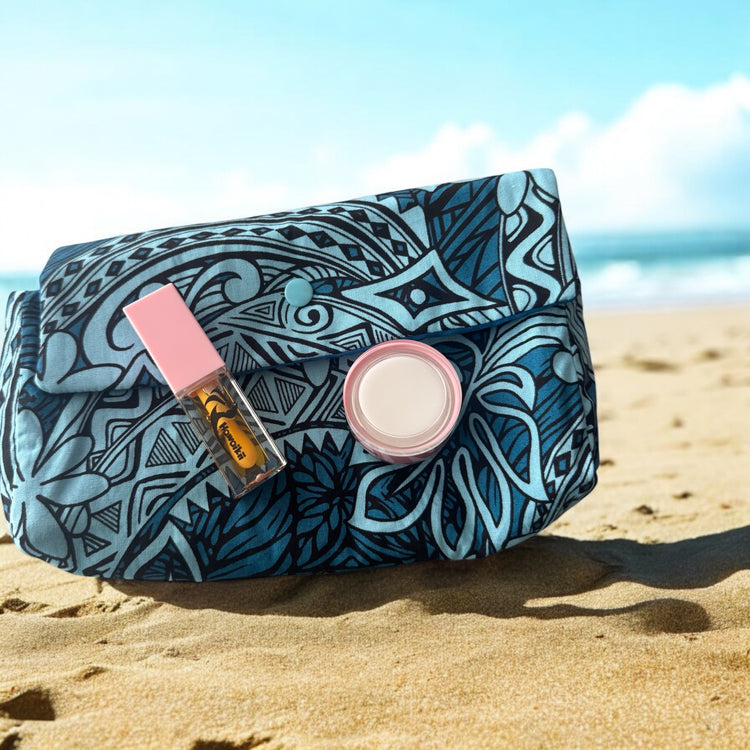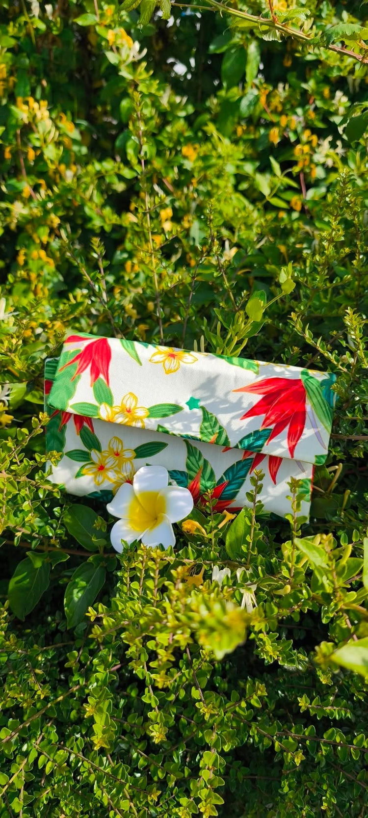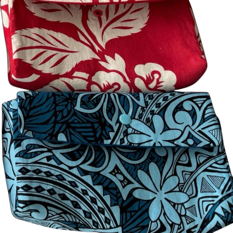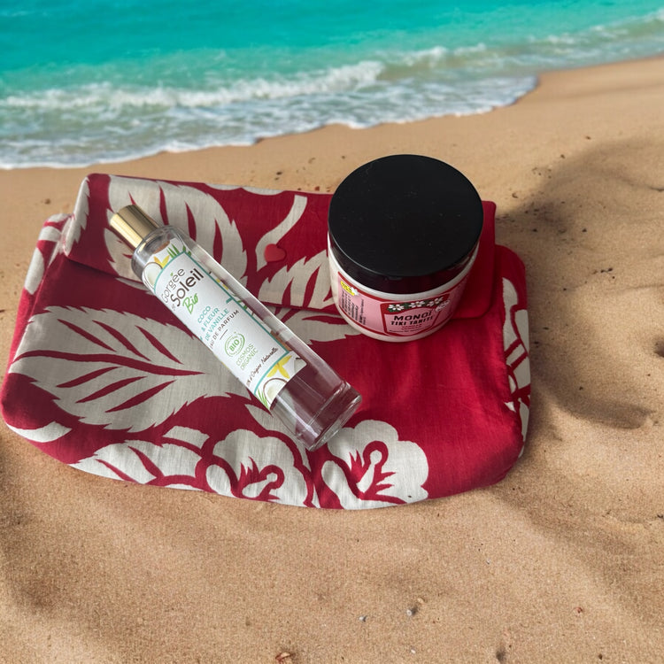 Confectionnée à la main avec des tissus traditionnels tahitiens aux motifs colorés et vibrants, cette trousse incarne à la fois l'élégance des îles et la fonctionnalité moderne.