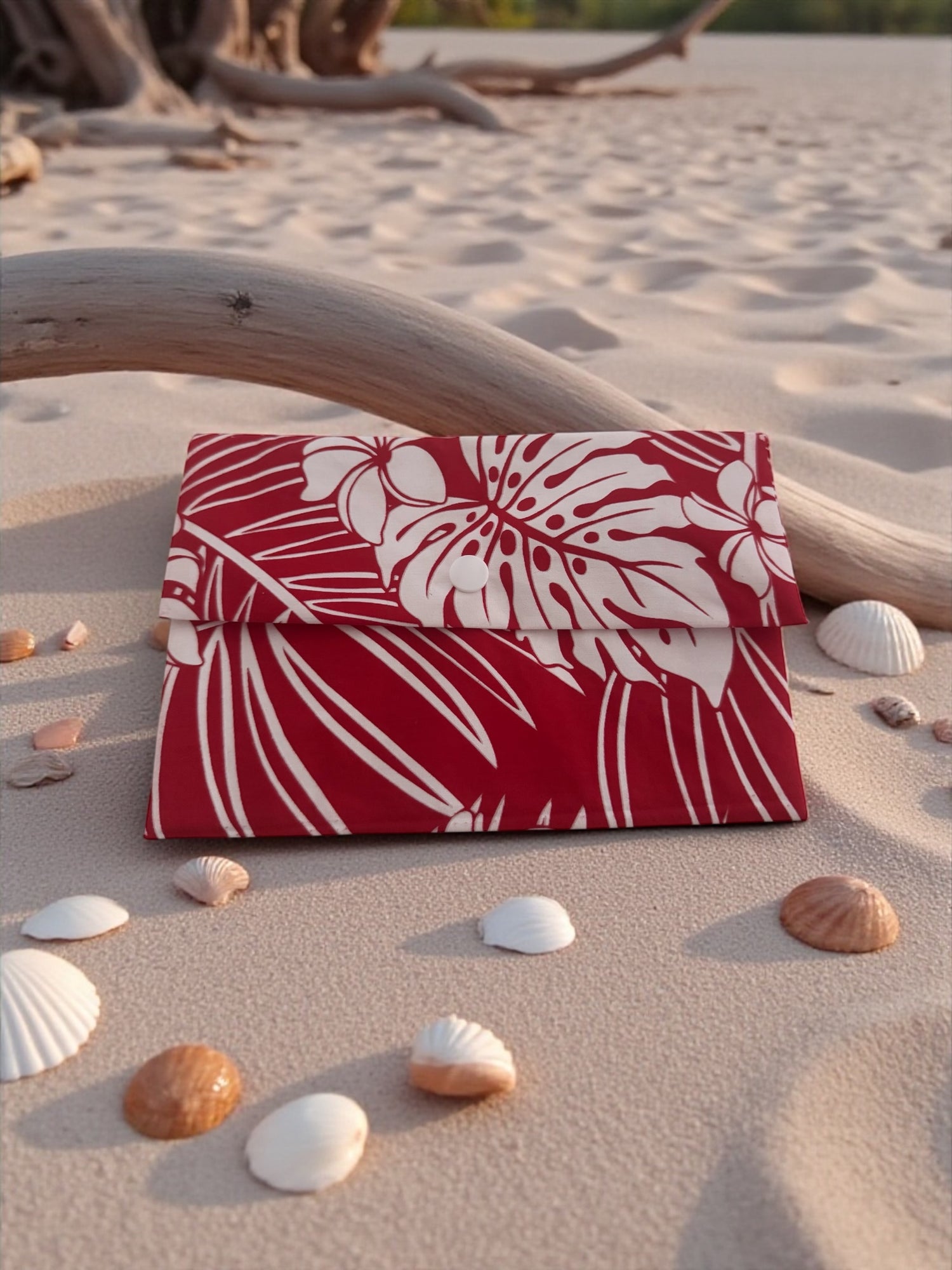 Une pochette de présentation en tissu tahitien élégant, un écrin élégant pour offrir .