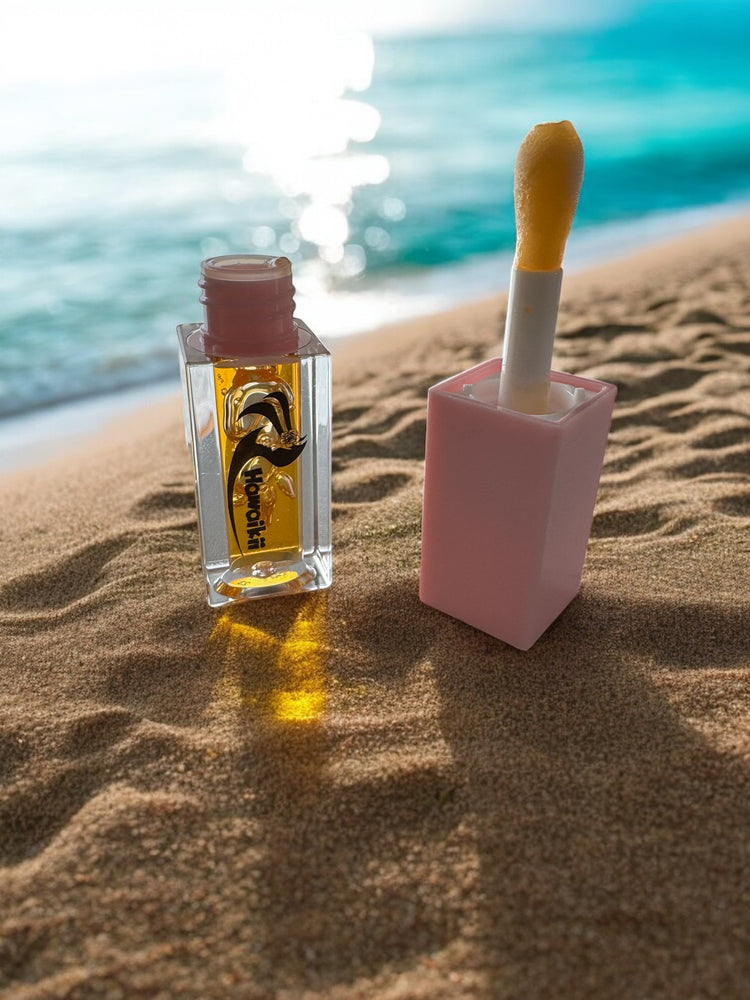 Soleil, fruit et sensualité sur vos lèvres. Découvrez notre gloss à lèvres Hawaikii parfum Mangue, une invitation à l'évasion tropicale.